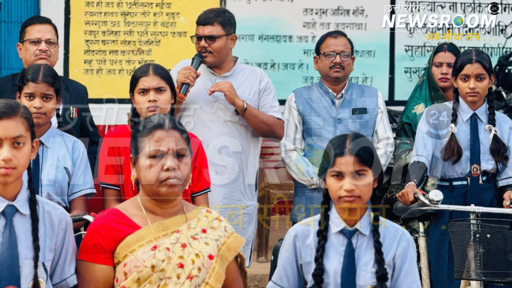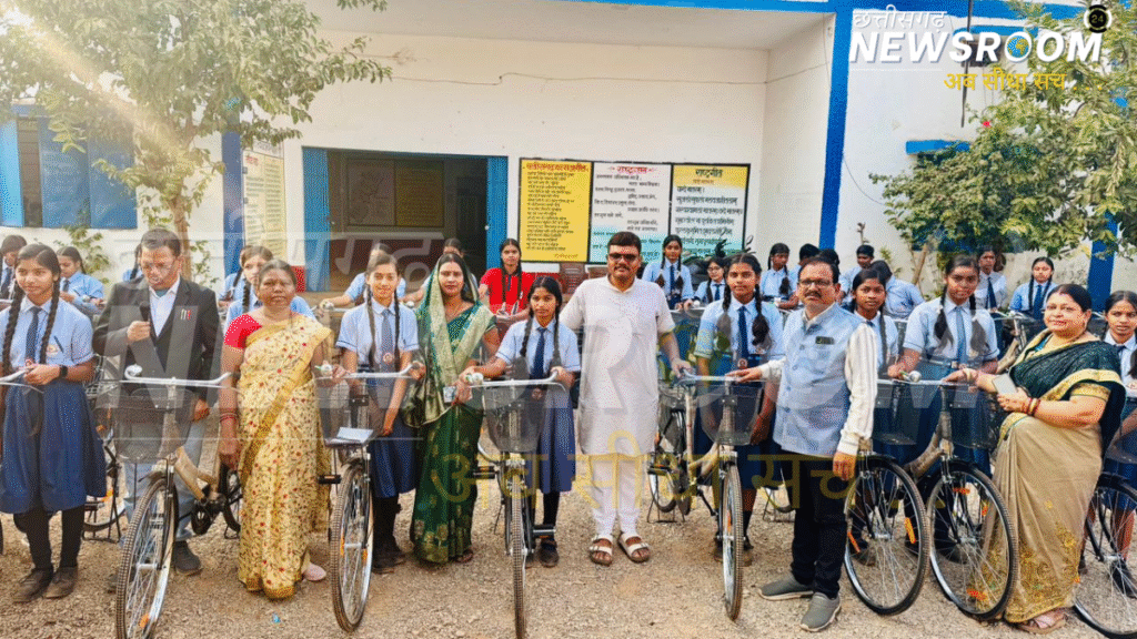 स्वामी आत्मानंद स्कूल स्टेशन पारा में 45 छात्राओं को मिली साइकिल, सरस्वती साइकिल योजना के तहत हुआ वितरण