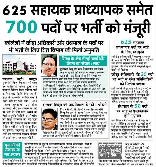 “छत्तीसगढ़ में सरकारी कॉलेजों में जल्द होगी बड़ी भर्ती, 700 पदों पर नियुक्ति से शिक्षा व्यवस्था को मिलेगी नई मजबूती और युवाओं को रोजगार का मौका।”