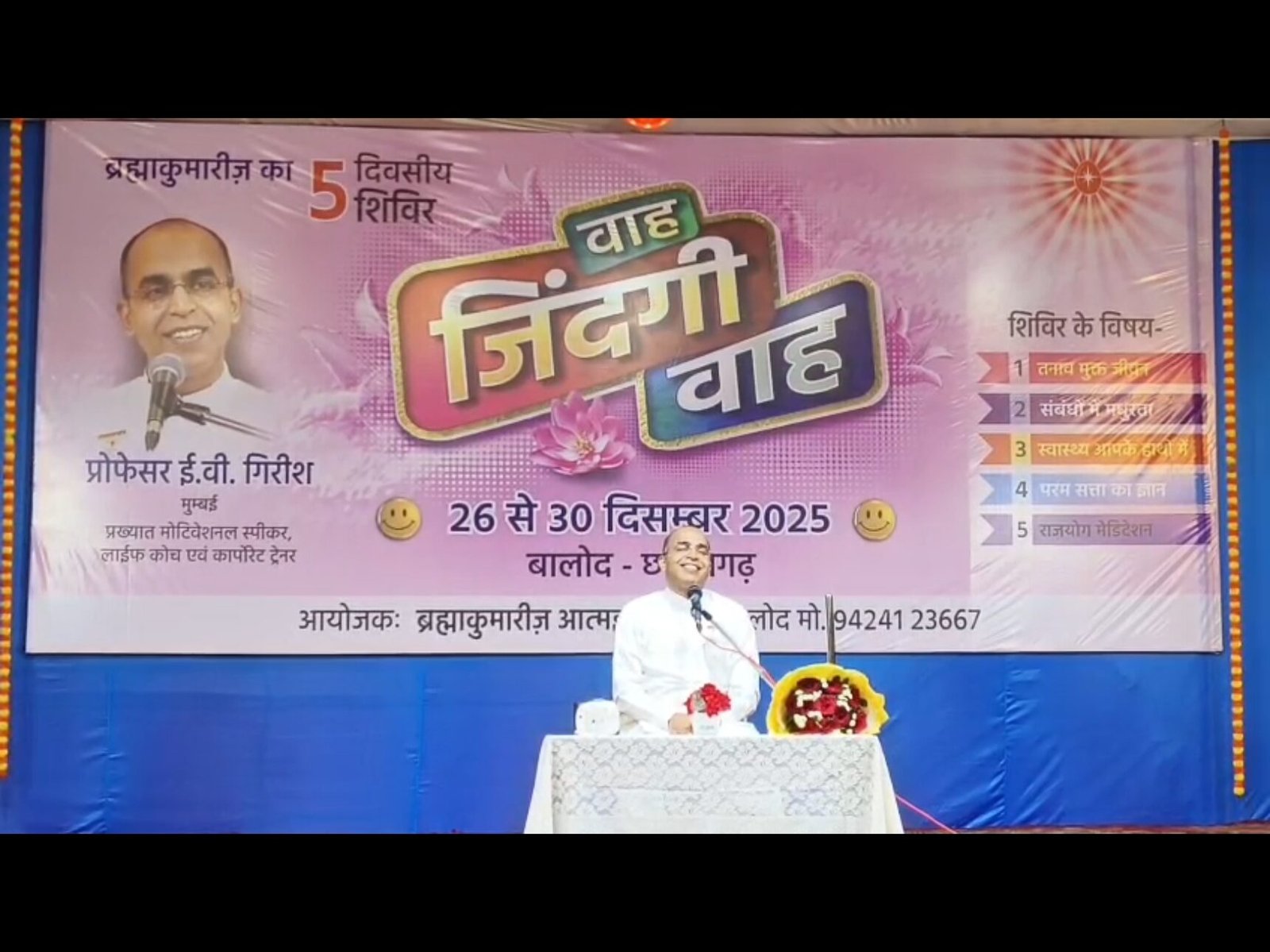 छत्तीसगढ़ के बालोद जिले के आमापारा बागीचा में इन दिनों एक ऐसा वातावरण बना हुआ है… जो मन, बुद्धि और आत्मा—तीनों को छू रहा है।यहाँ आयोजित “वाह ज़िंदगी वाह” पाँच दिवसीय शिविर… आत्मिक ऊर्जा का एक सशक्त केंद्र बन चुका है।ब्रह्मा कुमारीज़ आत्मज्ञान द्वारा संचालित यह शिविर… जीवन को भीतर से समझने, सँवारने और नई दिशा देने का अवसर प्रदान कर रहा है।इस शिविर में मार्गदर्शन दे रहे हैं मुंबई से पहुंचे प्रोफेसर ई. वी. गिरीश।सरल भाषा… जीवन से जुड़े उदाहरण… और मन को छू लेने वाली सीख के ज़रिए वे यह समझा रहे हैं कि—जीवन की असली शक्ति… आत्मा में होती है।