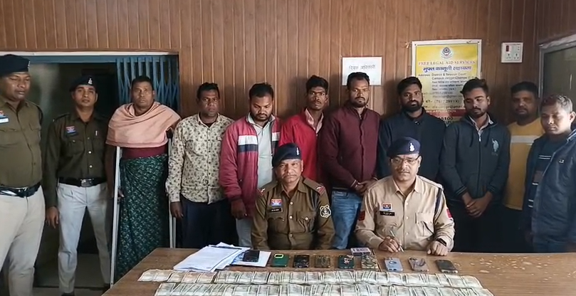 डभरा पुलिस को मुखबिर से सूचना मिली थी कि बाड़ा दरहा खार क्षेत्र में जुए का अवैध फड़ संचालित हो रहा है। सूचना मिलते ही साइबर सेल एवं डभरा पुलिस की टीम ने त्वरित कार्रवाई करते हुए मौके पर दबिश दी। छापेमारी के दौरान पुलिस ने जुआ खेलते हुए कुल 17 जुआरियों के खिलाफ प्रकरण दर्ज किया, जिनमें से 9 आरोपियों को मौके से गिरफ्तार किया गया है।