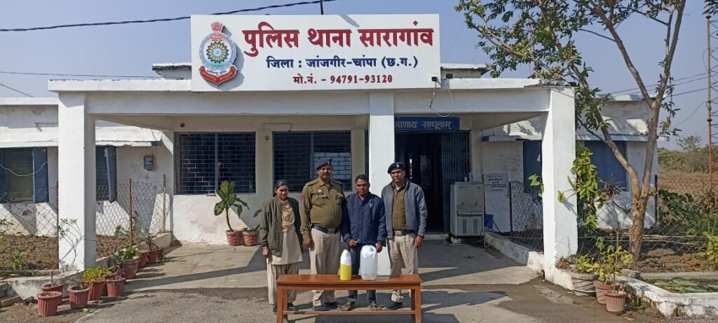 कार्रवाई के दौरान थाना सारागांव पुलिस ने आरोपी डोरीलाल खैरवार को 15 लीटर कच्ची महुआ शराब के साथ गिरफ्तार किया, वहीं थाना चांपा पुलिस ने आरोपी नारायण के कब्जे से 7 लीटर अवैध महुआ शराब बरामद की।