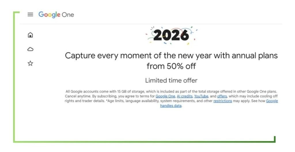 विशेषज्ञों का कहना है कि बढ़ती डिजिटल ज़रूरतों और डेटा स्टोरेज की मांग को देखते हुए यह ऑफर तकनीक प्रेमियों और छोटे व्यवसायों के लिए लाभकारी साबित होगा। Google ने यह भी बताया है कि यह ऑफर केवल सीमित समय के लिए मान्य है, इसलिए इच्छुक यूज़र्स को जल्दी निर्णय लेने की सलाह दी जा रही है।