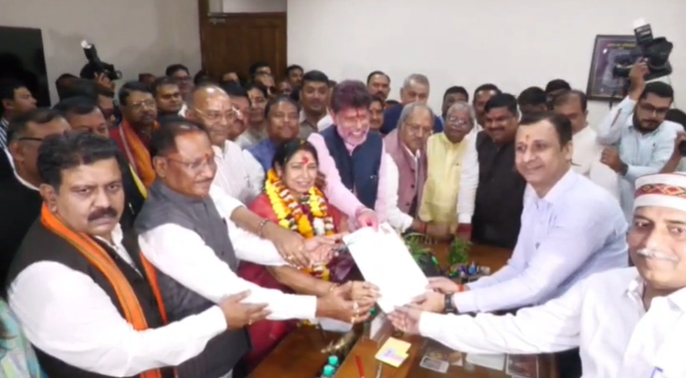 पुष्पांजलि के बाद लक्ष्मी वर्मा विधानसभा पहुंचीं और राज्यसभा के लिए अपना नामांकन दाखिल किया।
