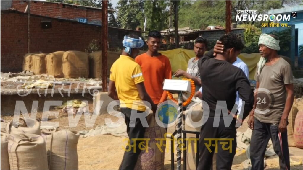 कलेक्टर अमृत विकास तोपनो ने देवरघटा धान उपार्जन केंद्र पहुंचकर नारियल फोड़कर और किसान गेंदराम साहू को माला पहनाकर खरीदी प्रक्रिया की आधिकारिक शुरुआत की