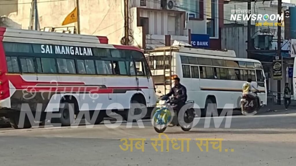 छोटी सड़कों पर बड़ी बसों का कब्ज़ा — यह सिर्फ चांपा की नहीं, बल्कि छोटे शहरों की आम समस्या बनती जा रही है।