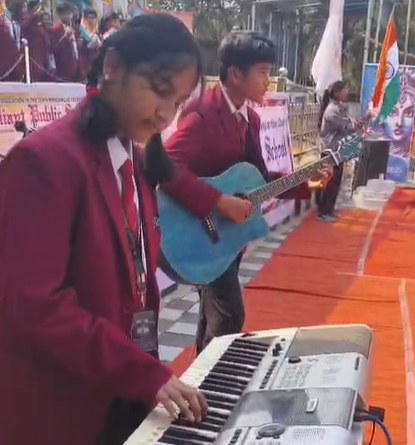 कार्यक्रम में बच्चों ने “संविधान बचेगा तभी भारत देश बढ़ेगा” विषय पर नुक्कड़ नाटक प्रस्तुत किया और सामूहिक रूप से देशभक्ति गीत गाकर देशभक्ति की भावना को उजागर किया।