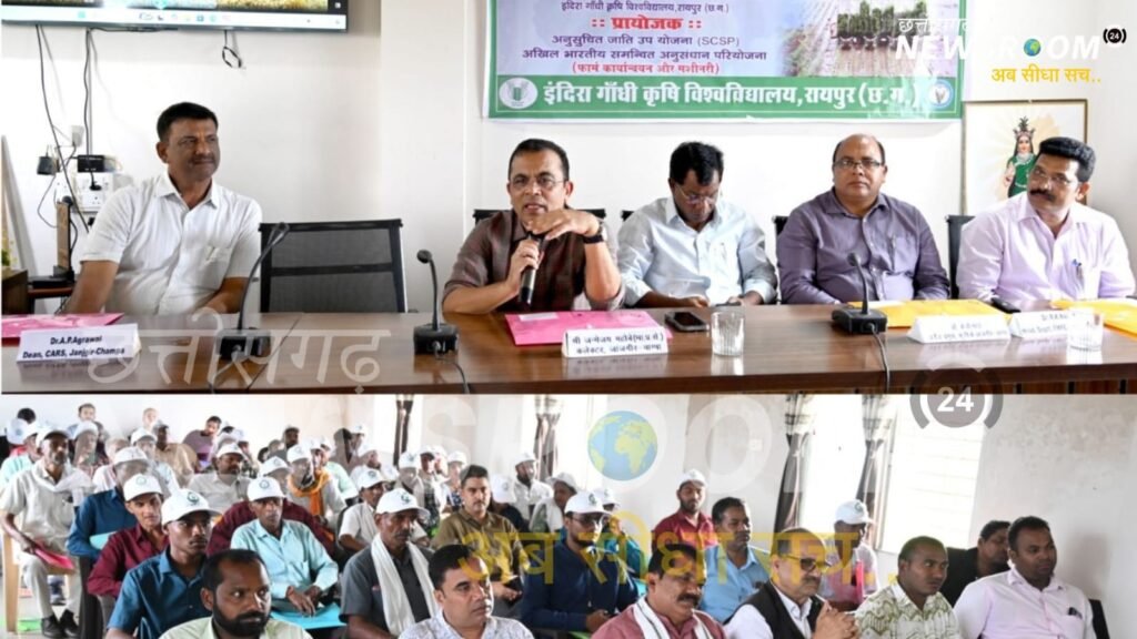 कृषि विज्ञान केन्द्र जांजगीर में “कृषि क्षेत्र में कृषि यंत्रीकरण का उपयोग” विषय पर एकदिवसीय प्रशिक्षण कार्यक्रम का आयोजन किया गया। इस अवसर पर कलेक्टर जन्मेजय महोबे ने किसानों से सीधे संवाद करते हुए फसल चक्र परिवर्तन, जल संरक्षण और प्राकृतिक खेती को बढ़ावा देने पर जोर दिया।