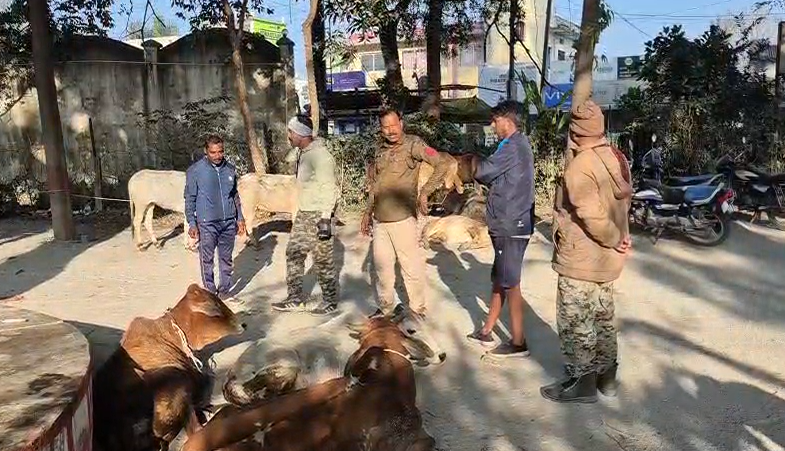 नाकेबंदी तोड़कर भागे गौ तस्कर, कुनकुरी में मुठभेड़ जैसे हालात, 16 मवेशी बरामद