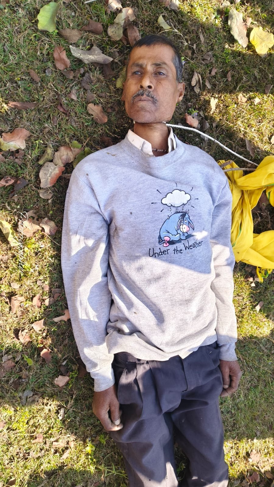 मृतक ने सफेद शर्ट, ग्रे रंग का स्वेटर जिस पर “UNDER THE WEATHER” लिखा हुआ है, काला फुल पैंट, ग्रे रंग के स्पोर्ट्स जूते और मेरून रंग के मोजे पहन रखे थे।