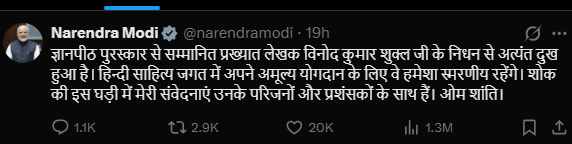 हिंदी साहित्य ने एक युग खो दिया, लेकिन विनोद कुमार शुक्ल की सादगी, संवेदनशीलता और मौलिकता की धरोहर हमें हमेशा मार्गदर्शन करती रहेगी।