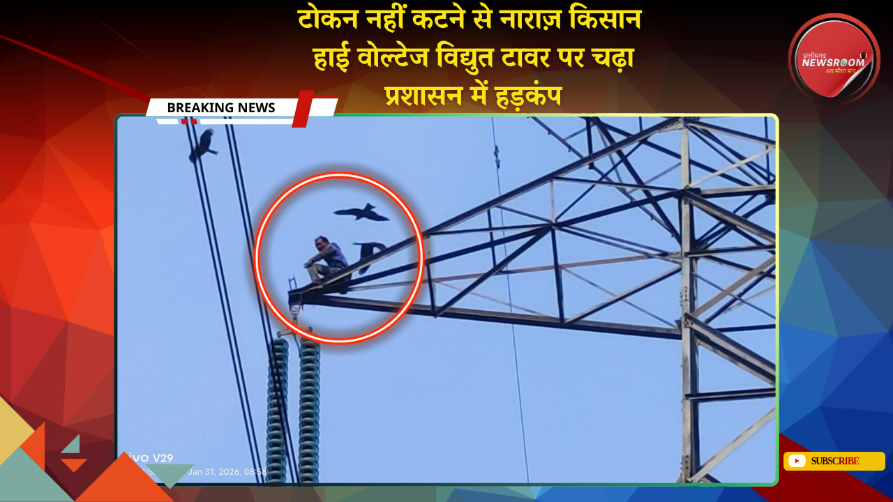 टोकन नहीं कटने से नाराज़ किसान हाई वोल्टेज विद्युत टावर पर चढ़ा, प्रशासन में हड़कंप