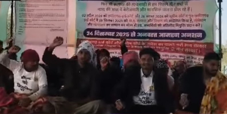 डीएड अभ्यर्थी पिछले 24 दिसंबर से अनशन पर डटे हुए हैं। उनका कहना है कि सहायक शिक्षक भर्ती 2023 में अब भी करीब 2300 पद रिक्त हैं, जिनमें से 1600 से अधिक पद अनुसूचित जनजाति (आदिवासी) वर्ग के बताए जा रहे हैं। इसके बावजूद इन पदों पर अब तक नियुक्ति नहीं होने से अभ्यर्थियों में भारी नाराजगी है।
