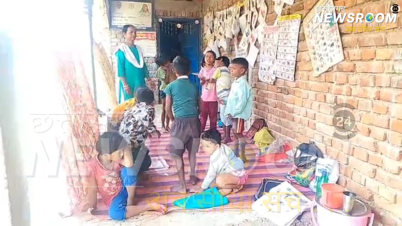 सक्ती जिले में बच्चों का भविष्य… चबूतरे पर टंगा है! जी हाँ, जहां मासूमों को पोषण और शिक्षा मिलनी चाहिए, वहाँ साड़ी का पर्दा लगा कर चल रहा है पूरा आंगनबाड़ी केंद्र!