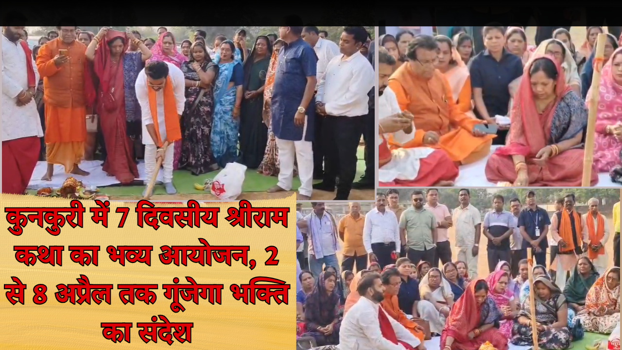 कुनकुरी नगर में जल्द ही भक्ति का विशाल दरबार सजने जा रहा है। सलियाटोली मिनी स्टेडियम में 2 अप्रैल से 8 अप्रैल तक सात दिवसीय श्रीराम कथा का भव्य आयोजन होगा, जिसमें स्वामी चिन्मयानंद बापू अपने प्रवचनों से श्रद्धालुओं को राम कथा का रसपान कराएंगे। आयोजन को लेकर क्षेत्र में तैयारियां तेज हो गई हैं और भक्तों में खासा उत्साह देखा जा रहा है।