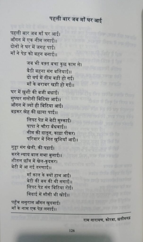 इस प्रतियोगिता में देशभर से 650 रचनाकारों ने भाग लिया था, जिनमें से 151 रचनाकारों की रचनाओं को चयनित कर एक साझा संकलन “एक पेड़ मां के नाम” प्रकाशित किया गया, जिसे गोल्डन बुक ऑफ वर्ल्ड रिकॉर्ड में स्थान प्राप्त हुआ। इस कृति का विमोचन माननीय राज्यपाल श्री रमेन डेका के करकमलों से किया गया।