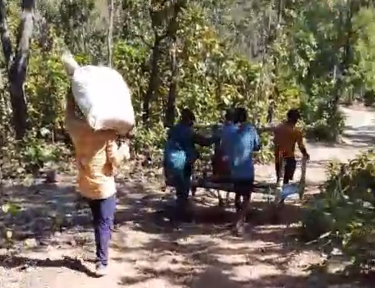 गांव तक सड़क नहीं होने की वजह से 108 एम्बुलेंस भी अंदर नहीं पहुंच सकी, जिससे ग्रामीणों को मजबूरी में मरीज को खटिया पर मुख्य सड़क तक लाना पड़ा।