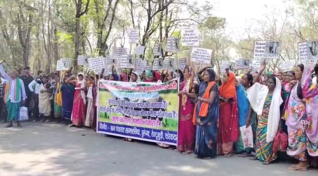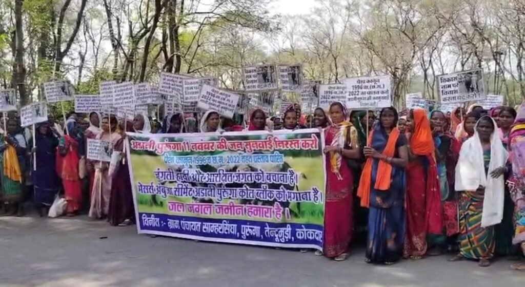 रायगढ़ कलेक्टर से मिलने के लिए धरमजयगढ़ विधानसभा के सैकड़ों ग्रामीण हाथों में तख्ती लिए मेन गेट के अंदर घुस गए !