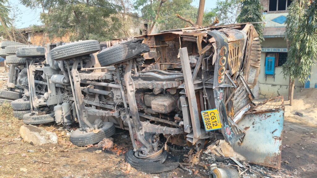 NH-49 अमरताल में बड़ा हादसा, लापरवाही से ओवरटेक करने पर ट्रक और हाईवा घरों में घुसे, भीषण आग लगी