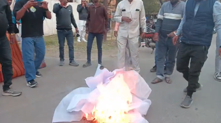कलेक्ट्रेट के बाहर कफ़न ओढ़कर प्रदर्शन,