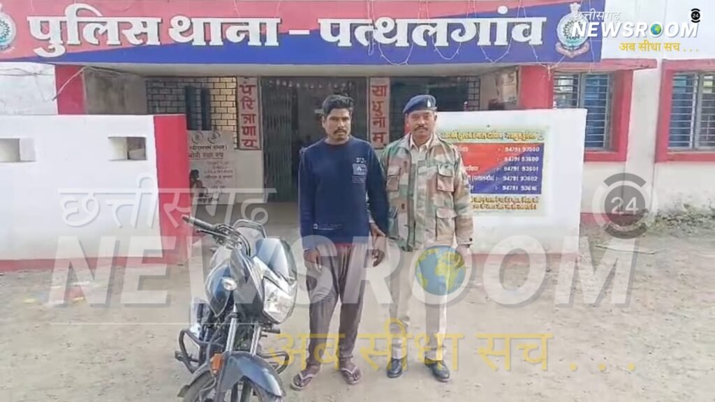 जशपुर पुलिस की त्वरित घेराबंदी—पत्थलगांव में बाइक चोर मंटू नट चोरी की होंडा साइन बाइक सहित गिरफ्तार