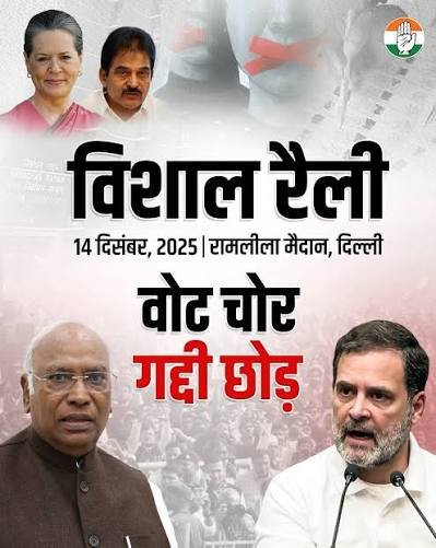 दिल्ली में कांग्रेस की शक्ति-परीक्षा: 14 दिसंबर की ‘मेगा रैली’ से बढ़ी राजनीतिक गर्मी, रामलीला मैदान में जुटेगी ताकत
