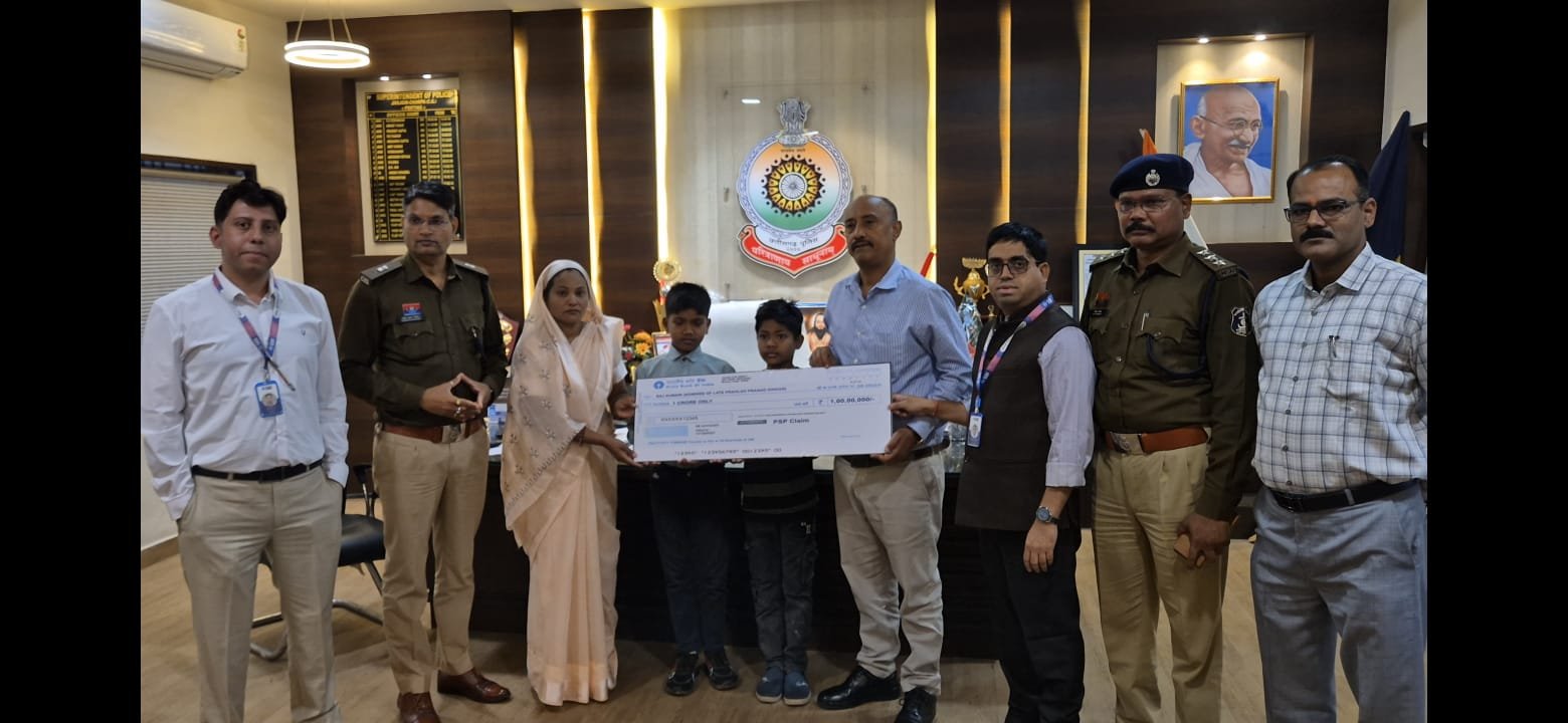 पुलिस अधीक्षक विजय कुमार पाण्डेय के सतत प्रयासों के फलस्वरूप आज 2 फरवरी 2026 को स्टेट बैंक ऑफ इंडिया, नैला शाखा द्वारा 1 करोड़ रुपये का बीमा चेक स्वर्गीय आरक्षक की पत्नी को सौंपा गया।