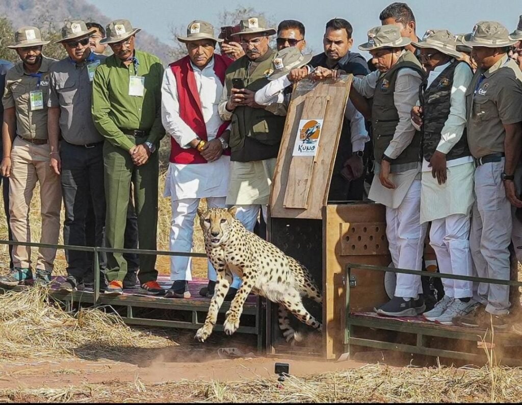 भारत सरकार ने वर्ष 2022 में नामीबिया और दक्षिण अफ्रीका से चीतों को लाकर कूनो नेशनल पार्क में बसाने की शुरुआत की थी। इसका उद्देश्य देश में विलुप्त हो चुके चीतों की प्रजाति को फिर से बसाना था।