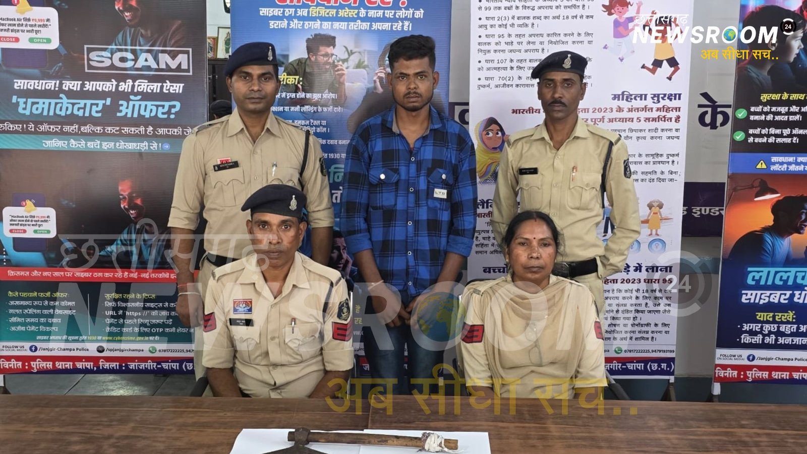 धारदार फरसा लहराकर लोगों को डरा रहा था युवक — चांपा पुलिस ने दबोचा, हथियार बरामद