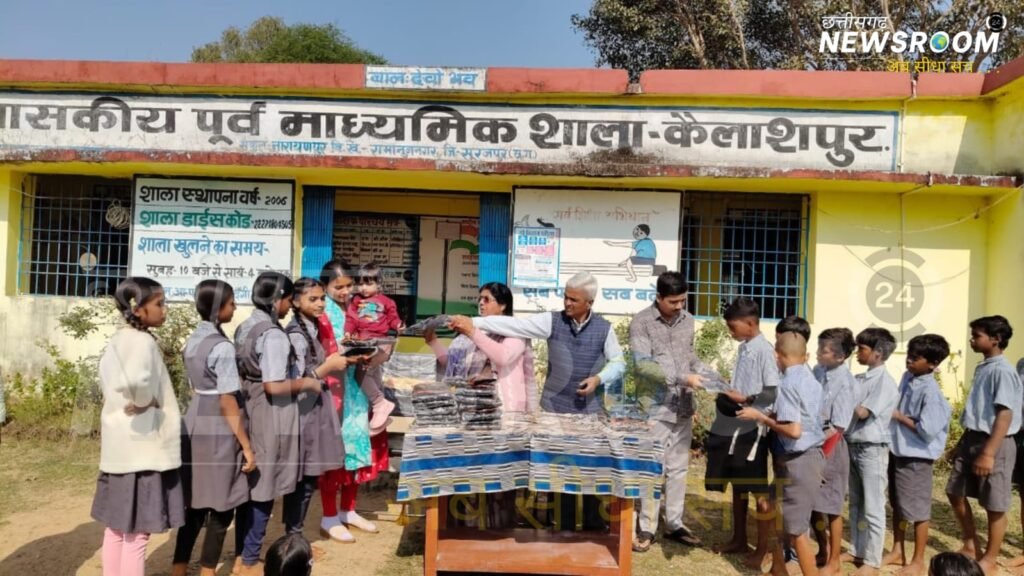 सूरजपुर जिले के रामानुजनगर विकासखंड में स्थित शासकीय माध्यमिक शाला कैलाशपुर में आज एक प्रेरणादायक और मानवता से भरा कार्यक्रम आयोजित किया गया। ठंड के बढ़ते प्रकोप को देखते हुए विद्यालय के 42 छात्र-छात्राओं को ऊनी स्वेटर वितरित किए गए।