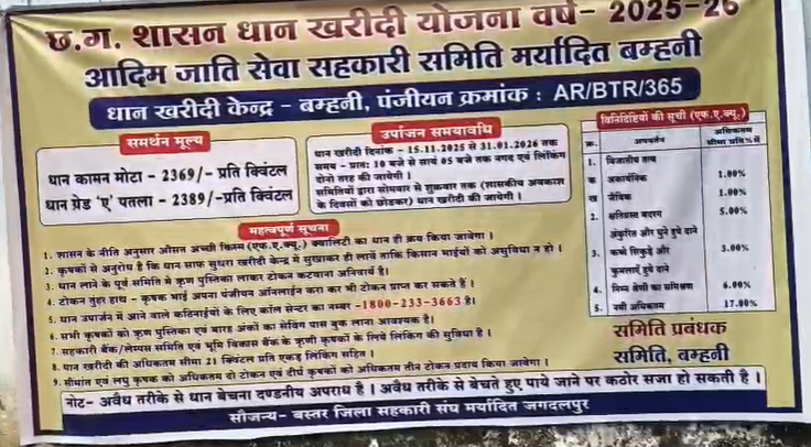 आज दोपहर अचानक मौसम बदला और तेज बारिश शुरू हो गई। बारिश के दौरान खरीदी केंद्रों में खुले में रखे धान को बचाने के लिए केंद्र प्रभारी आनन-फानन में तिरपाल से ढकने की कोशिश करते नजर आए, लेकिन तब तक कई बोरियां पूरी तरह भीग चुकी थीं।